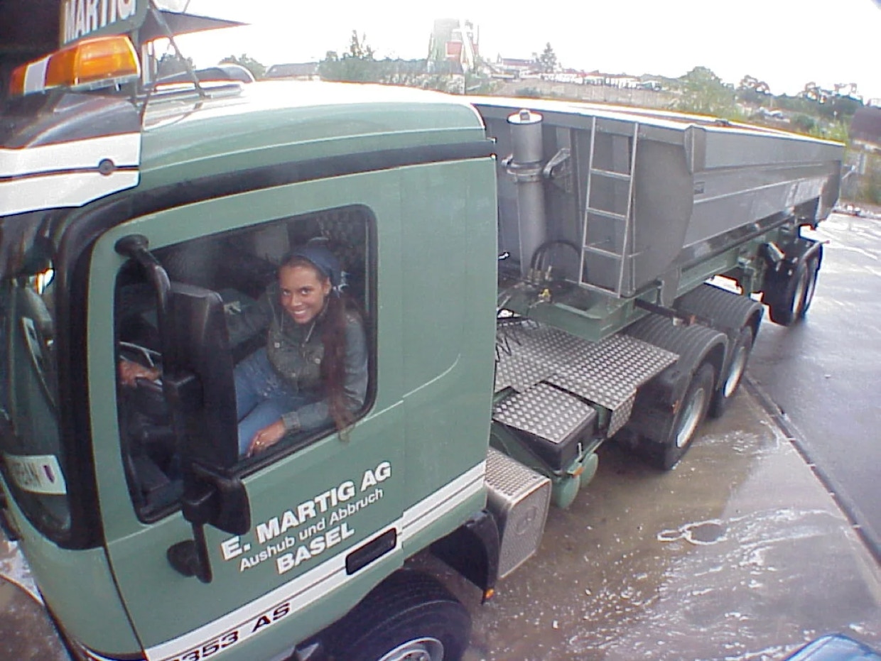 Model Janina Martig bei ihrer ersten LKW-Fahrt nach bestandener Prüfung.
