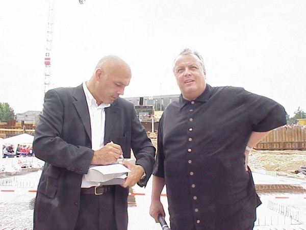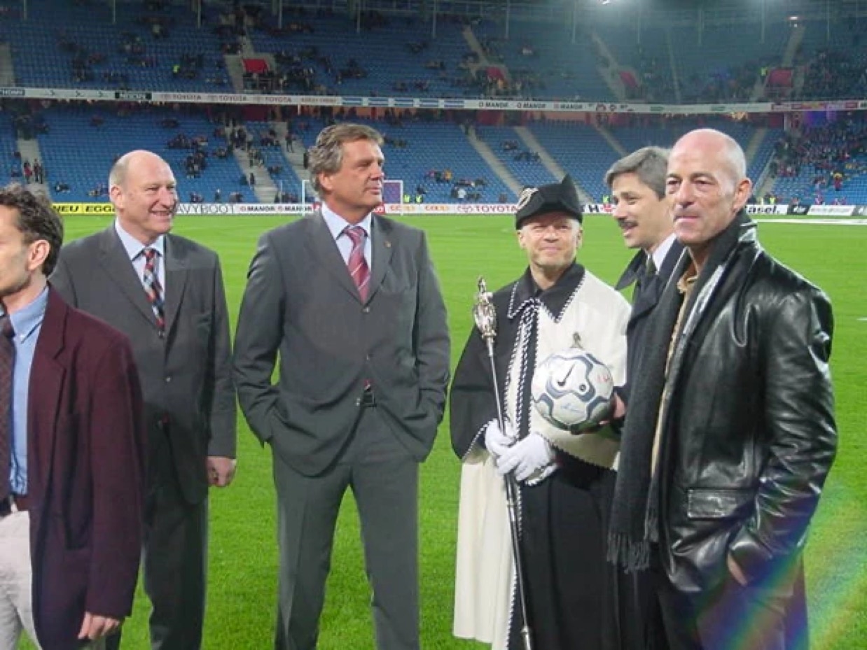 Karl Odermatt, René Jäggi und Jacques Herzog bei der Joggeli-Einweihung…