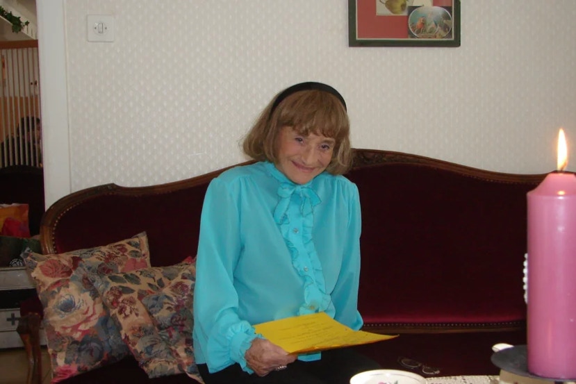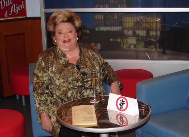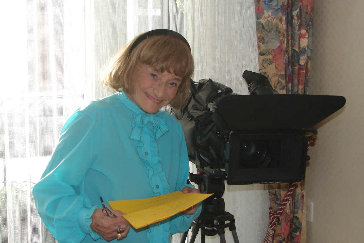 Märchentante Trudi Gerster bei einer TV-Aufzeichnung in ihrer Wohnung.