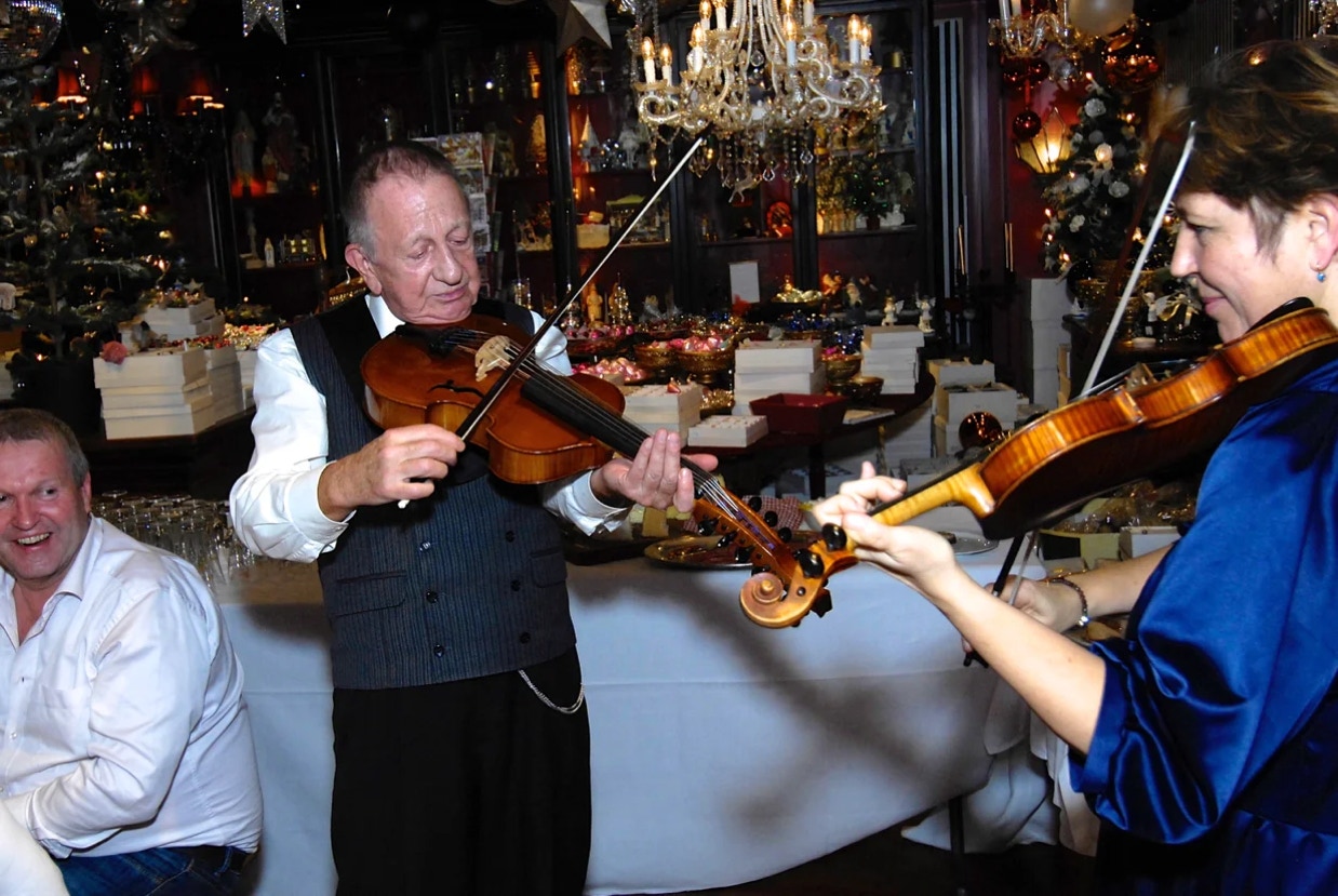 Johann «der Weihnachtsmann von Basel» Wanner an der Geige...