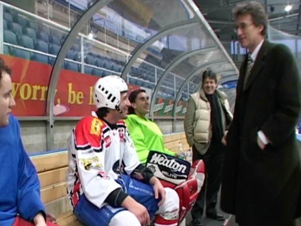 Exklusiv: Murat Yakin im Eishockey-Dress. Rechts mit Bruder Hakan (als Torwart) und EHC-Präsident Jean-Jacques Zwicky.