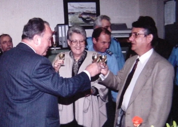 Regierungsrat Karl Schnyder verabschiedet sich auf dem Polizeidepartement von Alfredo Fabbri…