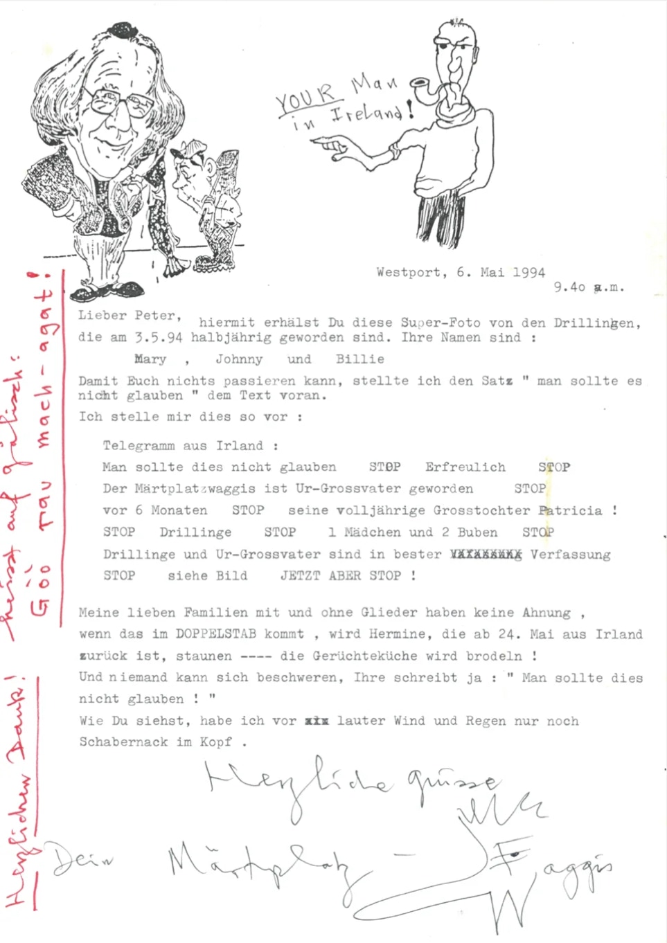 Typischer Fax aus Irland mit einem Vorschlag für eine «Zeitungsente»…